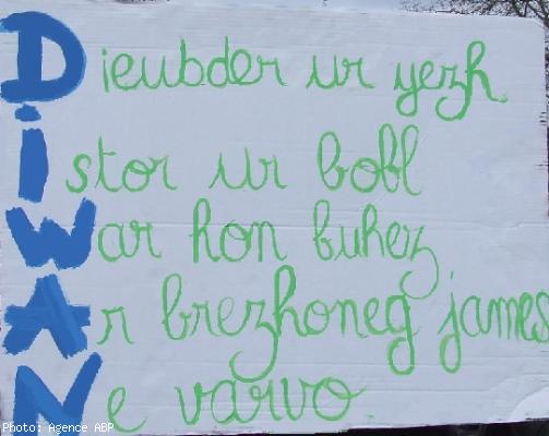 « Au retour sur la place de la Liberté de Keryado-Lorient, le président de Diwan dénonça fortement la primauté, la suprématie données par les autorités locales, à l'argent des grands groupes de médias, sur la culture et le devenir de nos enfants. Il remercia aussi les participants et promit que la prochaine manifestation, en novembre ou décembre prochain, aura lieu EN CENTRE VILLE ».