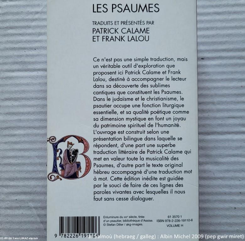 . Goude-se ez eus ur Salm pe un tamm anezhañ, ma vez hir. 150 Salm a zo e levr ar Salmoù, staget e-kreiz ar Bibl yuzev ivez. Er wech-mañ ez eo ar Salm 62 (pe 63 hervez niverennoù yuzev).
