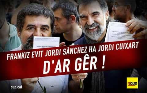 "Pa vo bodet kalz a dud tomm o c'halon da pobloù ar bed a fell dezho kaout muioc'h frankiz, e Karaez da geñver saloñs al levrioù, e kinnigomp en em vodañ en un doare arouezhel dirak Leurenn Glenmor d'ar Sul 29 a viz Here da 5e30, a-benn embann hor c'henskoazell da bobl Katalunia. Pedet eo an dud da zont gant bannieloù Breizh ha Katalunia pe broioù all, ket banielloù ar strolladoù politikel."