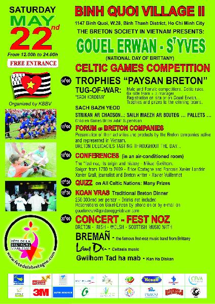 Kevredigezh Bretoned Bro Vietnam e Saïgon – Ho Chi Minh City – he deus aozet ur roll degouezhioù a-zoare, leun a zanvez breizhek. D'an 22vet a viz Mae eus kreisteiz betek hanternoz evit Gouel broadel Breizh, Gouel Erwan / Saint Yves.
