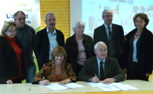 An it. Lena Louarn, prezidantez an Ofis, a oa bet degemeret en ti-kêr gant an ao. Daniel Moysan, maer Kraozon, d'an 8 a viz Here evit sinañ ar garta Ya d'ar brezhoneg dirak an it. Françoise Louarn, Kuzulierez-rannvro hag un toullad brav a dud.