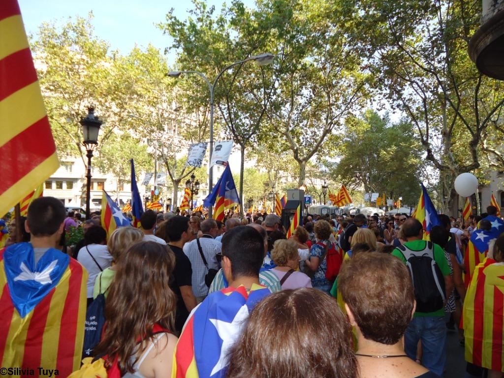 La manifestation qui a mené plus de 1,5 million de Catalans à Barcelone le 11 septembre dernier était nommée "Catalunya, nou estat d'Europa", "Catalogne, prochain Etat de l'Europe". Cette devise, proposée par l'Assemblea Nacional Catalana, était également appelée "Marxa sobre Barcelona", "Marche sur Barcelone" en allusion aux marches pacifiques de Mohandas Gandhi pour l'indépendance de l'Inde et de Martin Luther King pour les droits sociaux aux États-Unis d'Amérique.