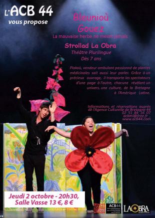Dans le cadre du Festival Celtomania, le jeudi 2 octobre 2014 à 20 h 30, l'ACB44 organise la représentation de Bleunioù gouez (Fleurs sauvages).