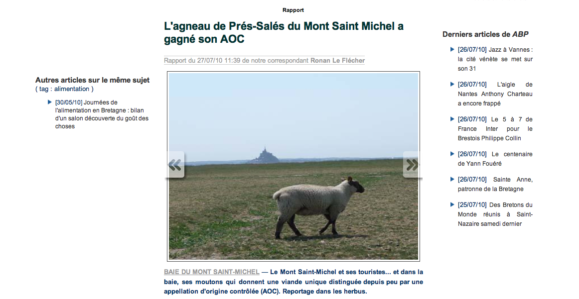 Il aura fallu près de dix-huit ans pour décrocher le précieux label, gage d'une plus grande notoriété ainsi que d'un prix et de débouchés garantis du fait de la rareté de ce produit. Pour l'instant, ils sont quatorze éleveurs sur quarante à être rentrée dans la démarche et à respecter un cahier des charges bien spécifique. Ils sont quatre en Ille et Vilaine et dix dans la Manche à élever entre terre et mer quelque cinq mille brebis. Il reste encore de la place sur les herbus pour satisfaire la demande du consommateur et pérenniser une pratique qui vient de loin. Au XIe siècle, les moines du Mont Saint-Michel avaient en effet un "droit de brebiage" leur permettant de choisir tous les ans une brebis dans chaque troupeau des exploitations. Les premiers pélerins en visite au Mont remarquèrent le goût particulier des agneaux élevés dans la région et en firent la réputation au cours de leurs voyages. Et dix siècles plus tard, on en parle encore !
