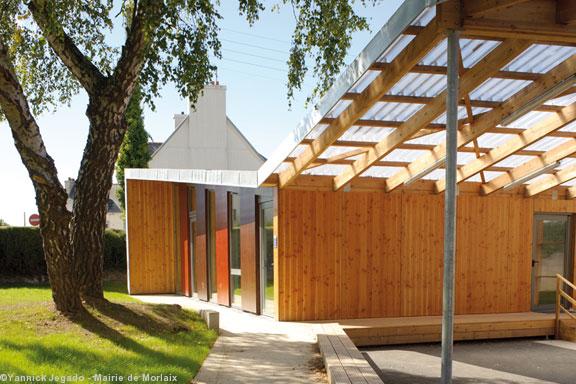 Il s'agit de l'extension du restaurant scolaire de l'école réalisée par l'architecte Yannick Jegado et commanditée par la mairie de Morlaix. http://www.architecturebretagne.com/pdf_PAB2011/37.pdf