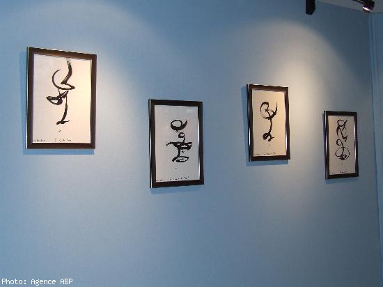 « Jakez Gaucher » [photo7], de Saint-Thois, Finistère, qui a écrit nombre d'articles et de livres sur la Bretagne et les Pays celtiques, est aussi artiste. Il expose, avec Spered Kelt, dont il est le secrétaire, des « Calligraphies » dont « la forme, aboutissement du geste, est à recevoir, un cadeau du Ciel, de l'invisible, toujours en mouvement, dont je n'ai saisi que l'instant... », écrit-il en présentation de son œuvre. « J'ai senti pousser en moi les fleurs de mémoires ancestrales, affinant ainsi ma perception des mondes subtils, d'ici ou d'ailleurs, pour laisser traîner ma plume poétique aux inspirations de l'instant présent. » Elles se nomment [photo8] : L'If de Ross, Le Chaudron du Dagda, Les Oiseaux du Sid, Le Gui sacré.