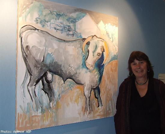 Pour les dix ans de « Poellgor an tarv », l'Académie du Taureau, l'Académie Bilingue des Arts de Bretagne, http://sitekreator.com/Poellgor_an_Tarv/main_page.html, « Joanna McKenzie-Farmer » nous offre un impressionnant taureau sur toile [photo9] ainsi que trois vaches pensives. Écossaise d'origine, Joanna McKenzie-Farmer vit depuis dix-neuf ans en Bretagne, près de Carhaix, Finistère, où elle peint depuis toujours, après avoir fait des études de Beaux Arts en Grande Bretagne. Elle est présidente de Poellgor an Tarv depuis deux ans.