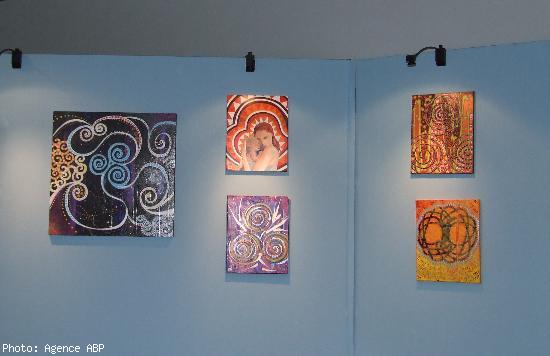 Parmi les nombreux artistes exposants qu'on ne peut tous citer, et dont on ne peut ici montrer toutes les œuvres exposées, mentionnons encore « Yann Quemeneur » de Rezé près de Nantes http://www.catsfamily.net/artespace/main/sub.php?rub=P_quemeneur. « Illustrateur pour une maison d'édition pour enfants et adolescents, il se consacre désormais entièrement à la peinture. La Bretagne est l'une de ses sources d'inspiration. » Il a toutefois illustré le très récent guide Nantes-Naoned bilingue de Pierre-Emmanuel Marais pour les éditions Yoran. Il décline ici les spirales celtiques dans un grand tourbillon de couleurs [photo12].