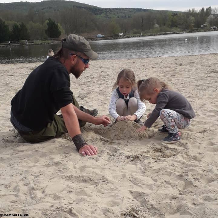 Je lis sur la page Facebook de Jonathan, cette phrase sous la photo de profil où il joue avec ses deux filles dans le sable :