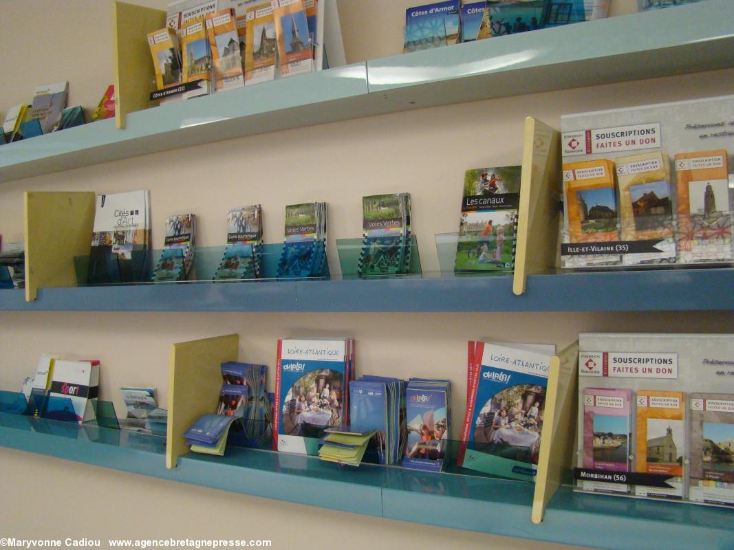 - Brochures et dépliants touristiques des cinq départements bretons. Ici ceux de Loire-Atlantique en nov. 2013. Ils ne sont plus à plat sur l’étagère supérieure comme ce fut le cas...