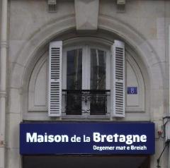 - Maison de la Bretagne’ Paris. 8 rue de l’’Arrivée. Bandeau au dessus du porche avec‘ <i>‘Degemer mat e Breizh</i>’. ABP 8559