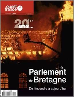 Après les 500 ans du décès d'Anne de Bretagne, sont commémorés, ce 4 février 2014, "les 20 ans de l'incendie du Parlement de Bretagne à Rennes". Le journal "Ouest-France" et "Le Mensuel de Rennes" s'en font l'écho : l'un avec un Hors-Série (dont nous reparlons ci-dessous) et l'autre avec un dossier spécial.