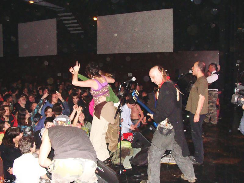 - <b>Les Ramoneurs de Menhirs</b> terminent le fest noz. Avec eux c\'est carrément le délire ! Le fouillis sur scène est savamment entretenu et réglé. Laurent - chapeau breton et fichu rouge à la Boy George - actionne son ampli et en avant les décibels de l