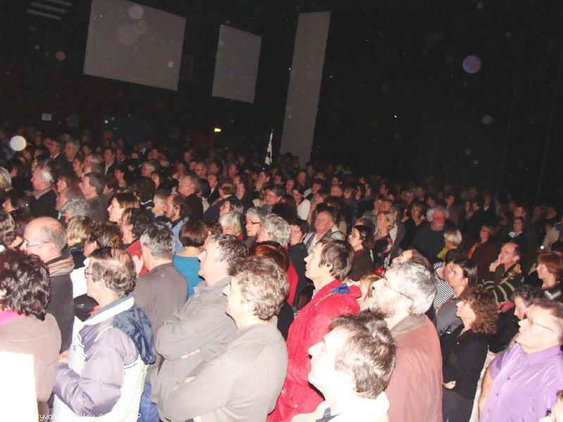 La soirée était annoncée pour 20 heures. À 22 heures 15 la salle Avel Vor de Plougastell affichait complet quant aux normes de sécurité : 1.100 personnes, venues de Brest, Landerneau ou Carhaix, de Brasparts et des Monts d'Arrée, de Quimper, du pays bigouden, du Trégor, de plus loin encore...