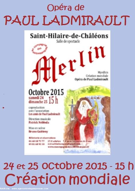 L'opéra "Merlin" ou Myrdhin du compositeur breton Paul Ladmirault sera donné en création mondiale en Bretagne les 24 et 25 octobre à Saint-Hilaire-de-Chaléons en Loire-Atlantique, Pays de Retz (1).
