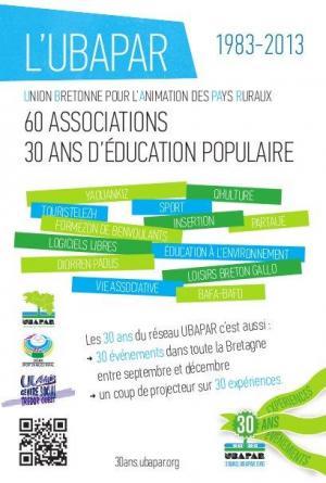 Pour fêter ses 30 ans, le réseau UBAPAR organise une journée festive ouverte à tous le samedi 19 octobre à Lanmeur (29), à la salle Steredenn. Au programme : conférence de Jean-Horgues-Debat, sociologue du milieu rural, et table ronde sur le rôle des associations dans la mise en place de la réforme des rythmes scolaires, dans la matinée. Et dans l'après-midi : jeux traditionnels, disc-golf, jouets buissonniers, forum outils pédagogiques, ateliers d'échange (circuit cours manger local, les sacs à dos découverte...).
