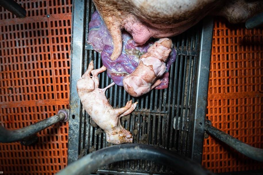 Les truies vivent dans des cages d'un mètre carré chacune. Elles se blessent, se dévorent entre elles quand elles sortent de leurs cages. Elles mettent bas dans des conditions cruelles avec une mortalité des petits très élevée si l'on s'en tient aux photos rapportées par L214. Certaines truies adoptent des comportements bizarres et mordent les barreaux d'aciers un peu comme des humains enfermés qui se cogneraient la tête contre les murs. On voit des porcelets morts un peu partout dans le reportage et ils semblent sortir du bâtiment par brouettées entières. À la naissance les petits se prennent souvent les pattes dans les interstices du plancher appelé le caillebotis. Ils sont souvent écrasés pas les truies qui ne peuvent même pas voir leurs petits car elles ne peuvent pas se retourner.