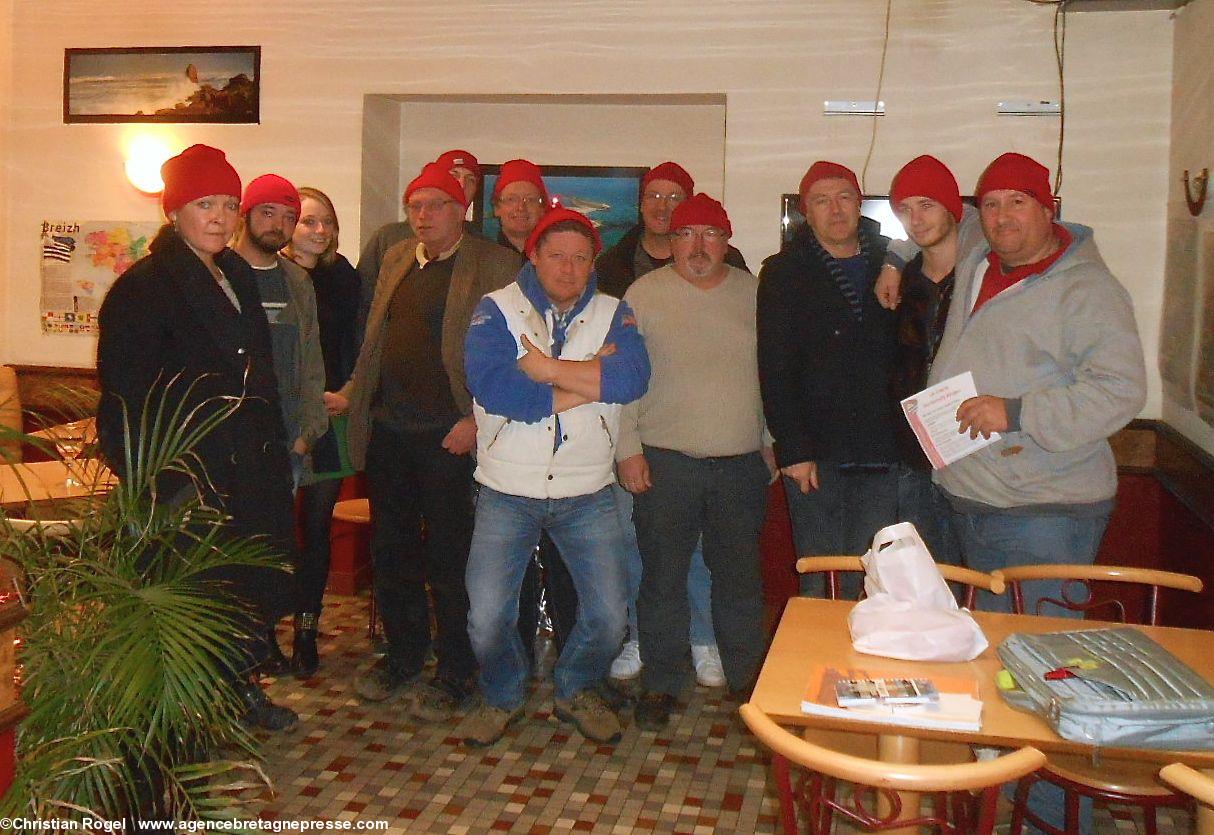 Trente personnes avaient répondu à l'appel, fixé à 16 heures, et le tour de table a montré la diversité des professions : transports (des patrons et des salariés), patron pêcheur, éleveur laitier, technicien en mécanique, éditeur, ouvriers d'usine, éventuellement intérimaire, technicien de l'industrie pétrolière, restaurateurs, cadre de vente automobile, étudiants, etc. Certains sont en formation pour être chauffeur routier et, comme les étudiants, voient leur avenir bouché. Du fait de la concurrence déloyale des salariés de l'Est de l'Europe, les camions ont du fret pour le départ de Bretagne, mais, ne trouvent plus rien à charger pour le retour. Plusieurs participants avaient été actifs sur le terrain, les trois samedis d'octobre, à Pont-de-Buis