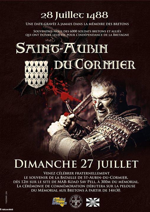 Chers compatriotes et amis, nous voici réunis sur les lieux même de la bataille de Saint-Aubin du Cormier, ce dimanche 27 juillet 2014, pour commémorer cette funeste bataille, qui de proche en proche fut sans doute une des causes principales du basculement politique de la Bretagne, qui passa de la souveraineté rayonnante à l'annexion aliénante. Cette bataille qui eut lieu il y a 526 ans, le lundi 28 juillet 1488, est effectivement terrible à plus d'un titre, dans son déroulement comme dans ses conséquences : six mille bretons et alliés y périssent sous les coups de l'envahisseur français, dans une terrible mêlée sous une chaleur écrasante, et dans une stupéfaction générale de toute la Bretagne.