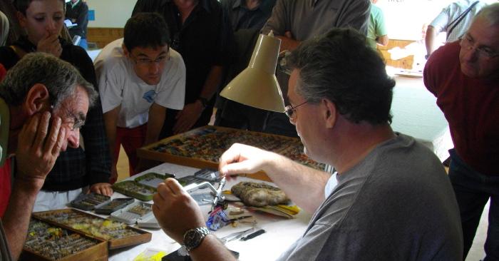 Un dimanche de septembre ensoleillé à Plouray, après un apéritif en présence du maire, voici l'Association bretonne de pêche à la mouche (ABPM), Nature et Patrimoine en Centre Bretagne (NPCB), de nombreux techniciens du montage de mouches, l'écovillage de Plouray, Ellé vivante ... qui se retrouvent pour échanger, discuter, s'informer.