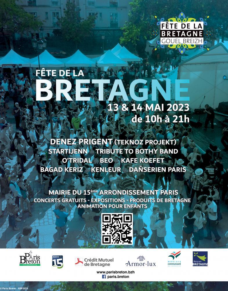 Paris Breton organise la Fête de la Bretagne les 13 et 14 mai à Paris, Mairie du 15e. Concerts, expositions, librairie, généalogie, produits culturels, produits culinaires, animations et jeux pour les enfants, tourisme. La fête est conçue pour promouvoir la Bretagne sous tous ses aspects dans un esprit convivial.