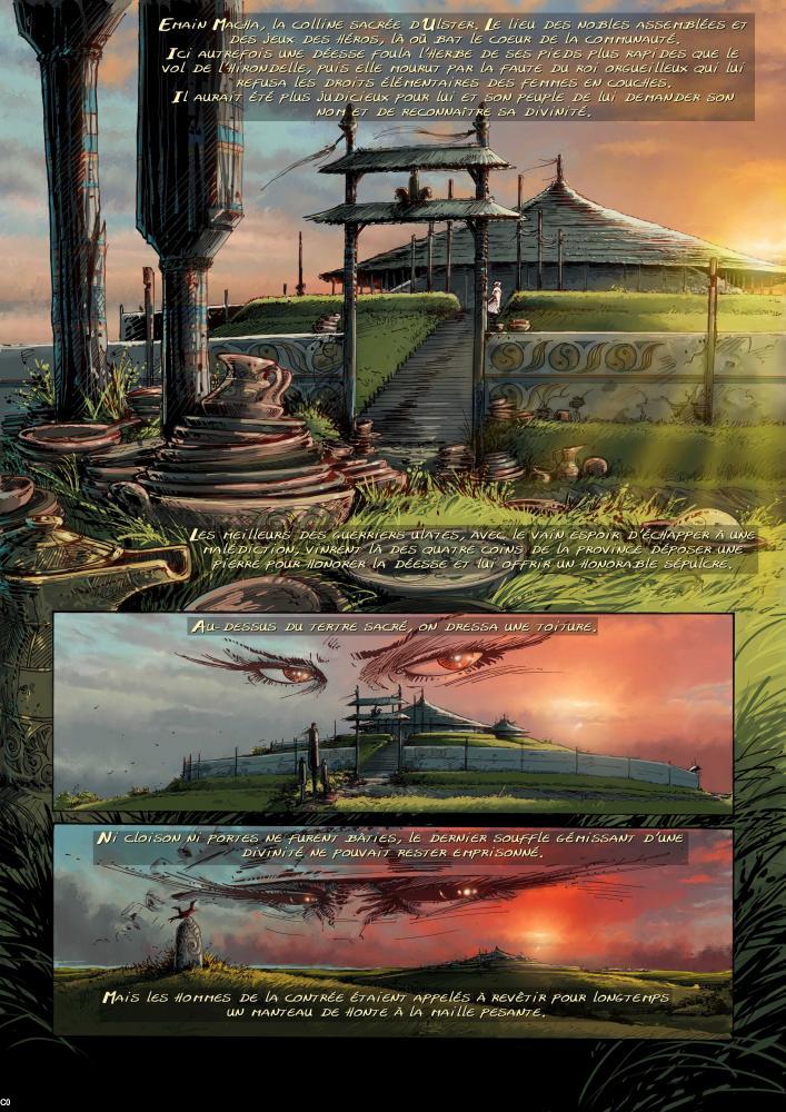 Dans son style à la fois moderne et résolument ancré, Ronan Seure Le Bihan fait rejaillir nos vieux mythes dans une explosion de couleur. Chaque page est une œuvre d’art à part entière sur laquelle le lecteur peut arrêter son regard à la recherche d’une myriade de petits détails. L’auteur a su capter l’âme celte, de celles qui oscillent toujours entre profane et sacré, entre monde des hommes et Sidh des Dieux.
