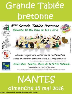 La 5e Grande tablée Bretonne, baptisée aussi Fête de la Bretagne « Gouel Breizh » 2016, organisée par le Comité des Vins Bretons, a pris ses quartiers le 15 mai 2016, place de la Petite Hollande à Nantes.