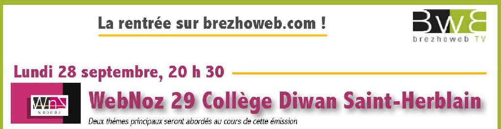 WebNoz, présentée par Lionel Buannic, est un rendez-vous, en direct, à ne pas manquer. Le deuxième thème abordé au cours de cette émission : Nouveau collège Diwan à Saint-Herblain : comment s'est passée la rentrée ?