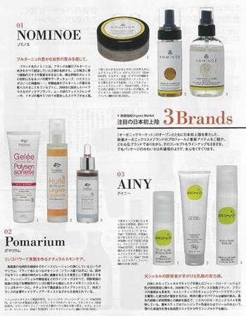Nous vous avions fait découvrir la marque bretonne de cosmétique haut de gamme Nominoë (produits organiques certifiés bio) dans un précédent article du site de Bretons du Japon . Suite à notre conférence de presse du 14 mai 2010 à Tokyo avec la harpiste bretonne Cécile Corbel – invitée par Bretons du Japon dans le cadre de la Fête de la Bretagne – et lors de laquelle des échantillons de produits Nominoë avaient été distribués, la marque bretonne s'est retrouvée sélectionnée par le magazine féminin Hanako du 27 mai 2010.