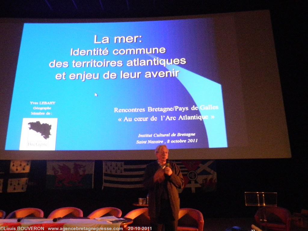 Au colloque de l'Institut culturel de Bretagne, Bretagne – Pays de Galles, au cœur de l'Arc Atlantique, le géographe Yves Lebahy a présenté l'après-midi une conférence fort documentée sur le passé, le présent et l'avenir de l'interface que constitue l'Océan Atlantique. La Bretagne et le Pays de Galles sont deux territoires atlantiques, à la fois séparés et réunis par la mer, espace d'échanges. Ses données étaient essentiellement tirées d'une étude de 2005, en partie seulement publiées dans un ouvrage commun.
