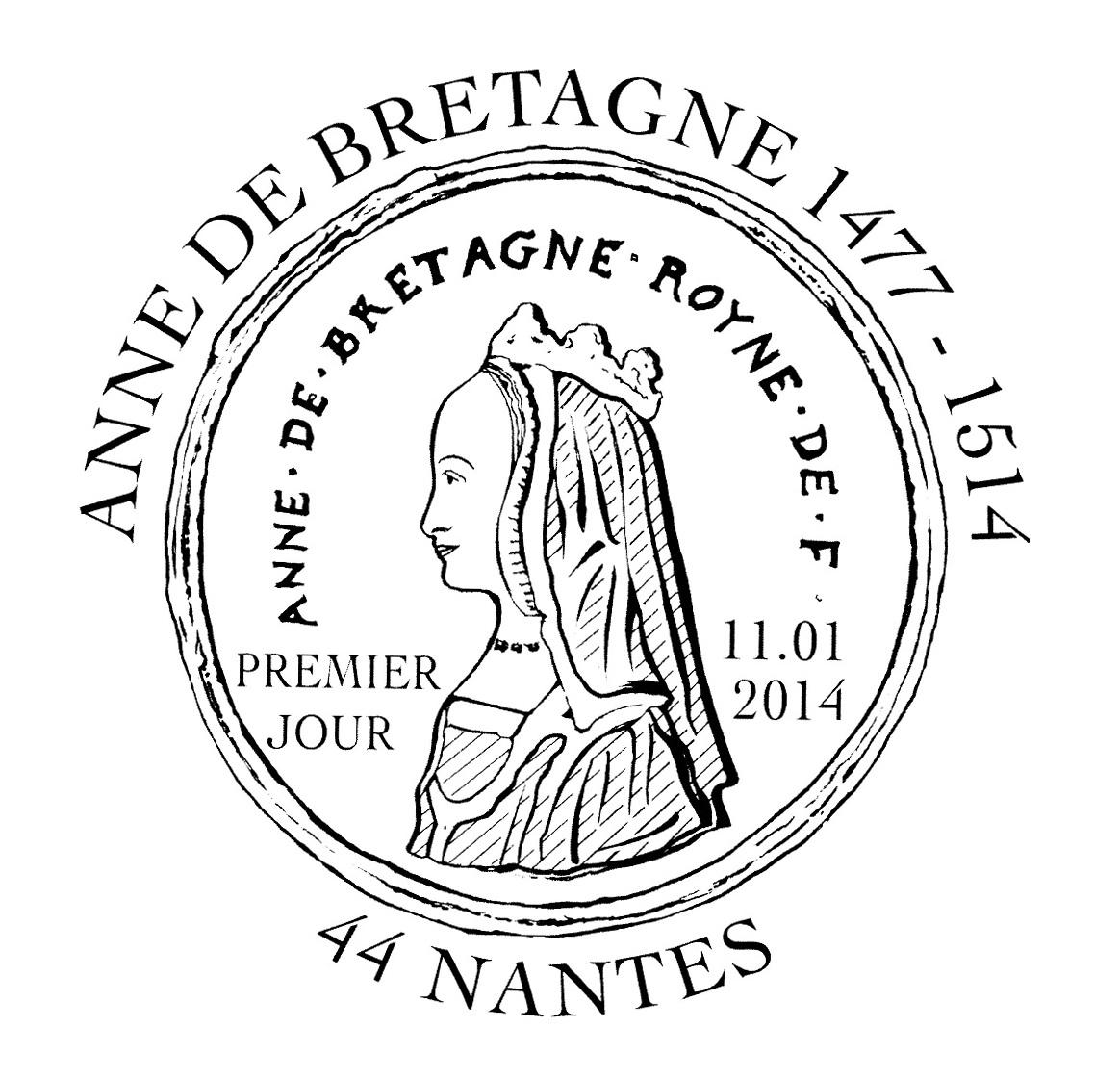 Le timbre Anne de Bretagne 2014 : premier jour samedi 11 janvier à Nantes, Blois, Paris et Saint-Denis