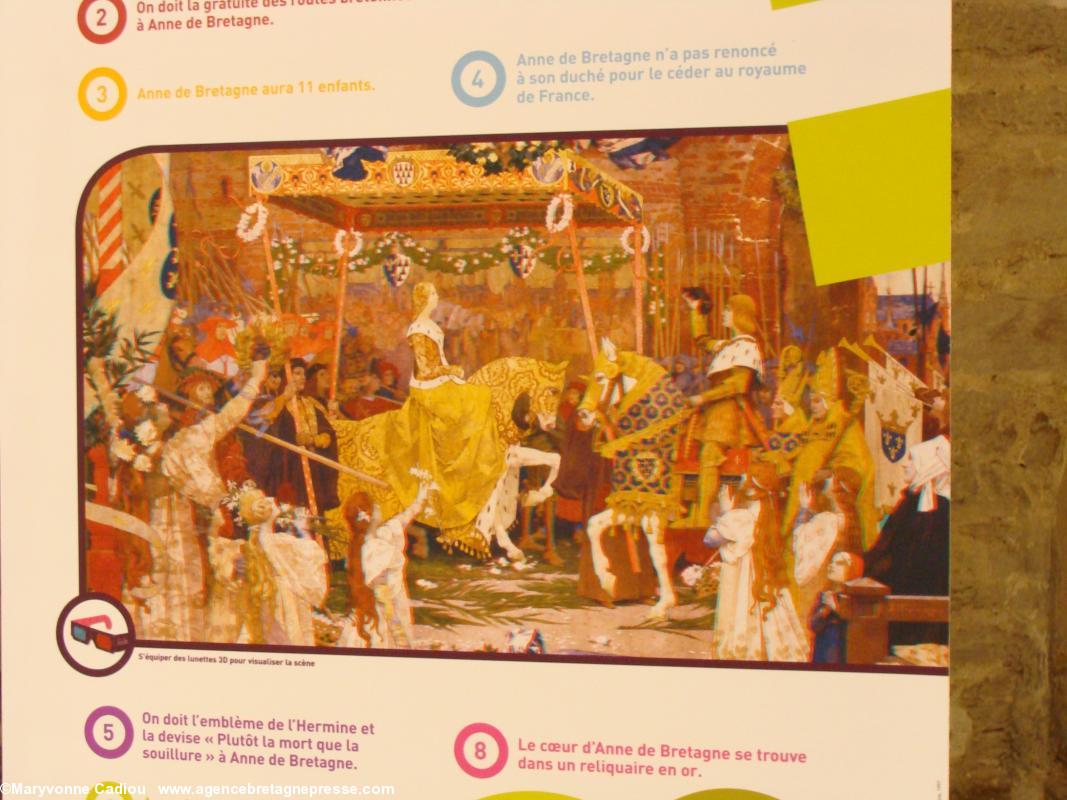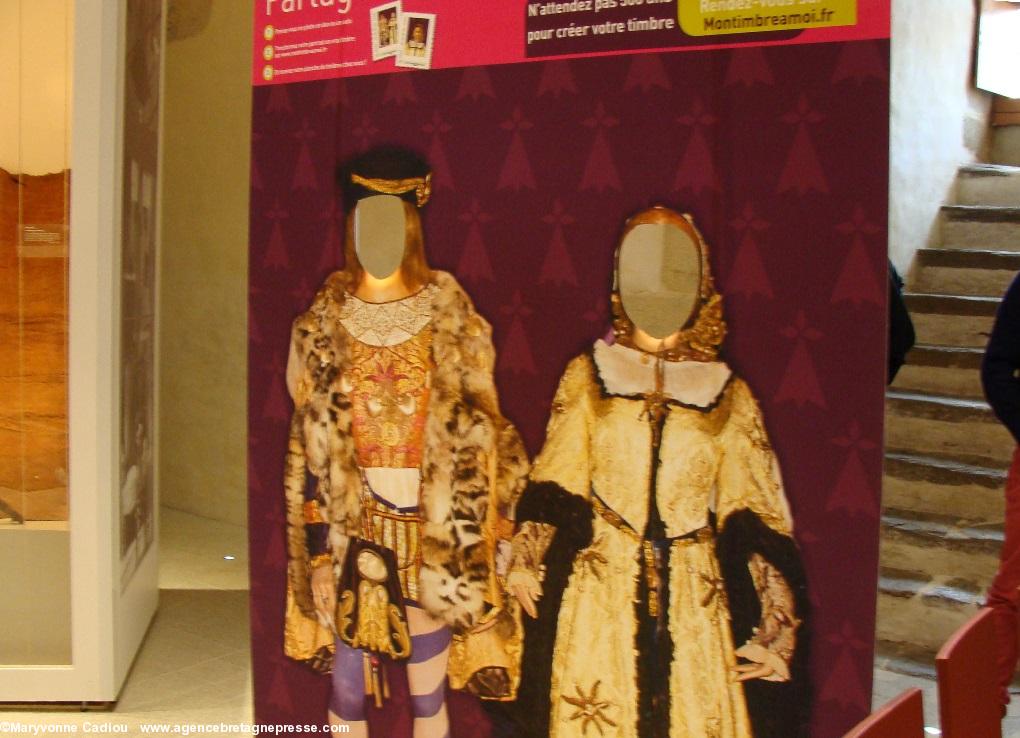 Une dame en robe rouge, immobile, figurera Anne de Bretagne. La robe, celle du timbre, a été créée par une dame passionnée d'Anne de Bretagne, récemment décédée.