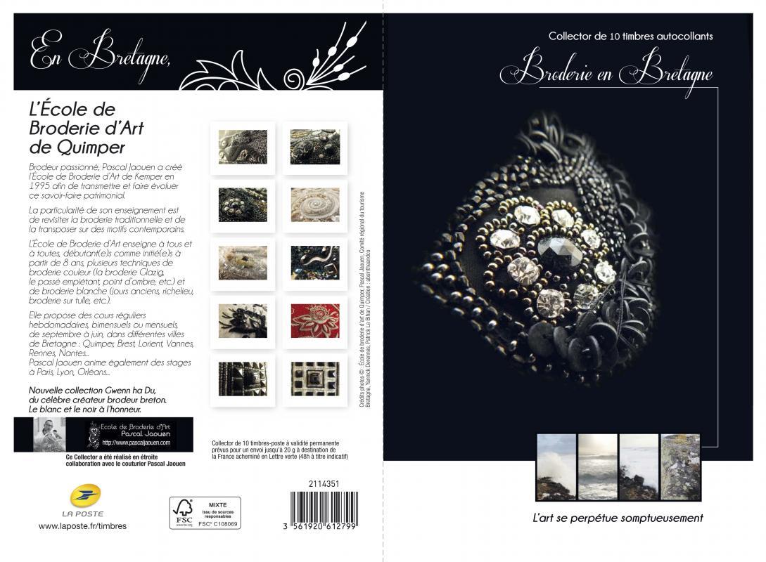 Aussi, depuis le lundi 16 juin 2014, tous les bureaux de poste du Morbihan et du Finistère proposeront un collector de dix timbres-poste intitulé « Broderie en Bretagne ». Chacun des dix timbres du collector illustre une pièce brodée de sa nouvelle collection, en noir et blanc, « Gwenn-ha-du ».