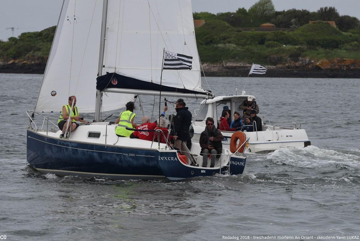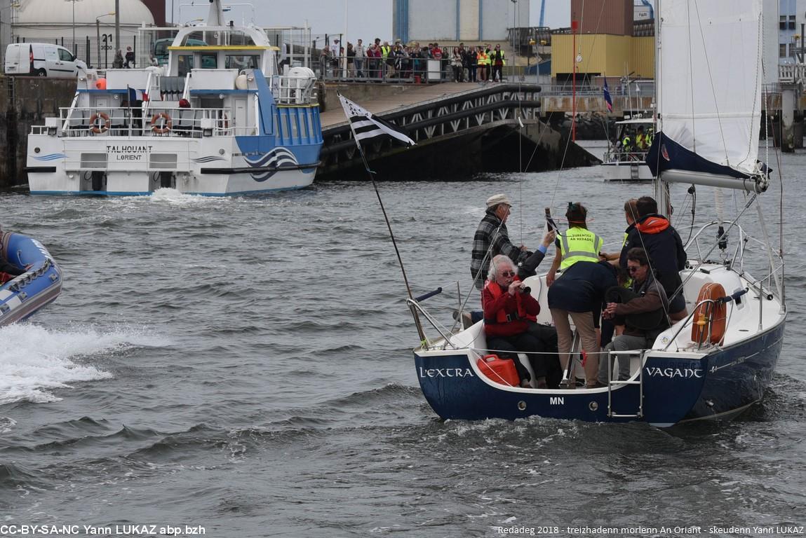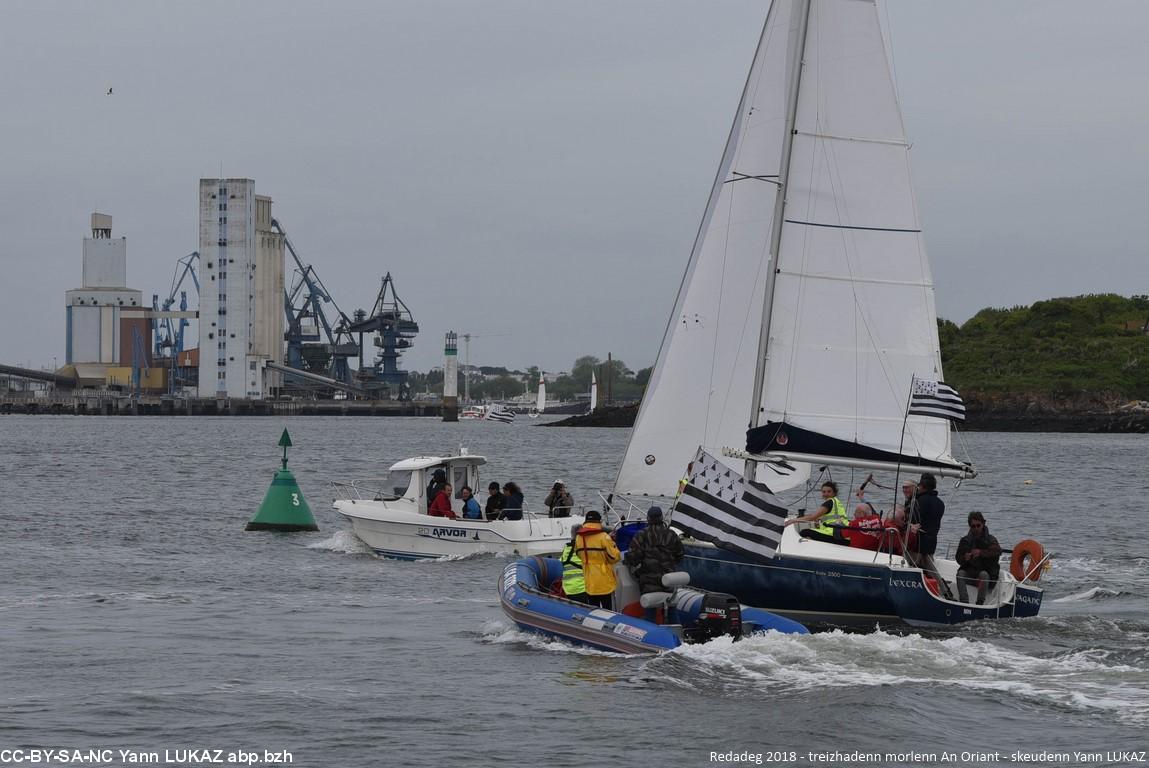 On le sait l’organisation de la Redadeg est minutieuse et le timing, dans la réalisation, est étonnant de précision. A Port-Louis / Porzh-Loeiz, tout était prêt pour faire passer le bâton-témoin d’un bord à l’autre de la rade de Lorient / An Oriant, soit un parcours maritime de deux kilomètres.