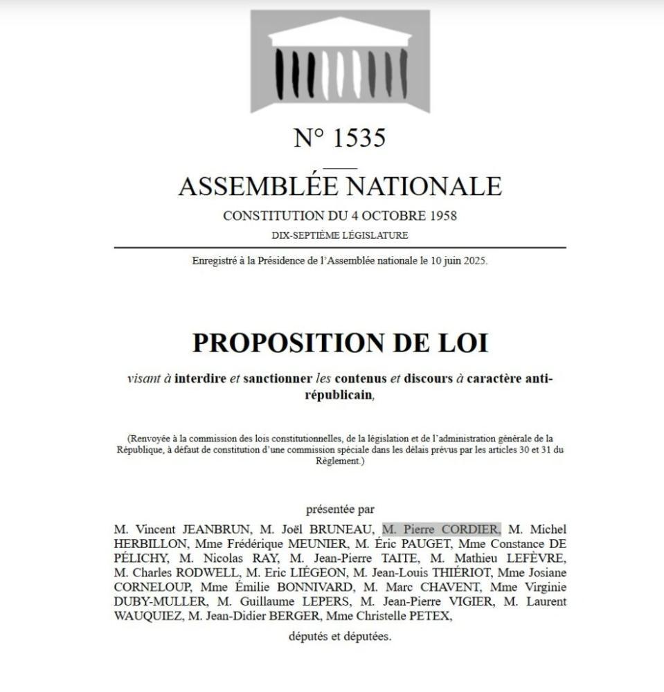 Cela fait longtemps que je souligne que le totalitarisme est l'aboutissement inévitable d'une république qui rejette la diversité. Aujourd'hui, il n'est plus nécessaire d'attendre l'arrivée de partis extrémistes au pouvoir ou de personnalités politiques spécifiques pour craindre une dérive totalitaire. La droite se revendiquant républicaine semble s'en charger avec la proposition de loi 1535 du 16 juin 2025. Cette loi prévoit des peines d'emprisonnement pour tout discours contraire à l'indivisibilité de la République et toute forme de "communautarisme". Cela illustre clairement la volonté totalitaire d'une République qui rejette toute forme de diversité.