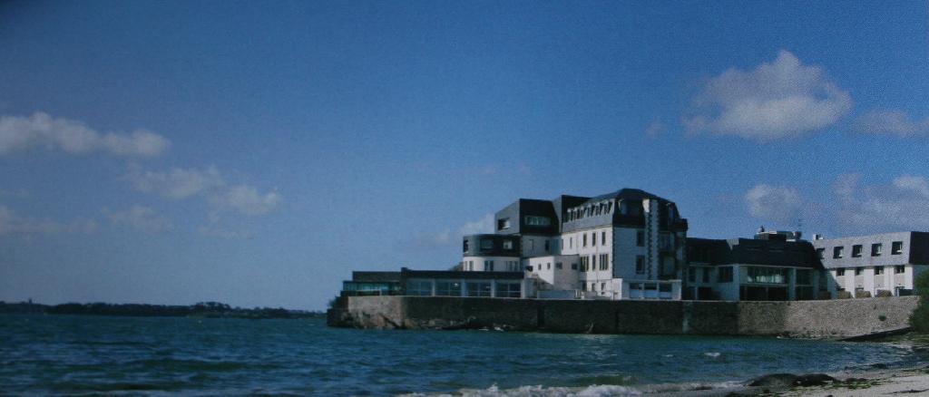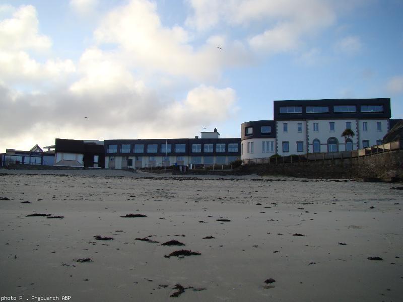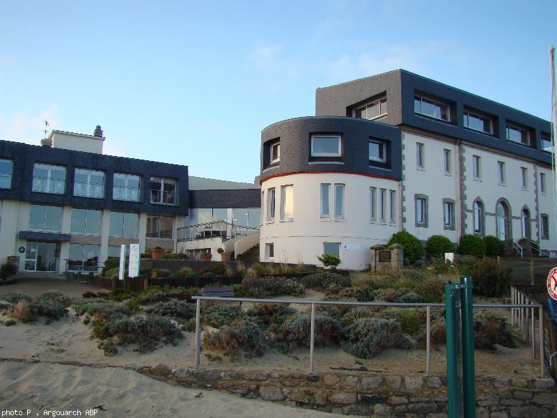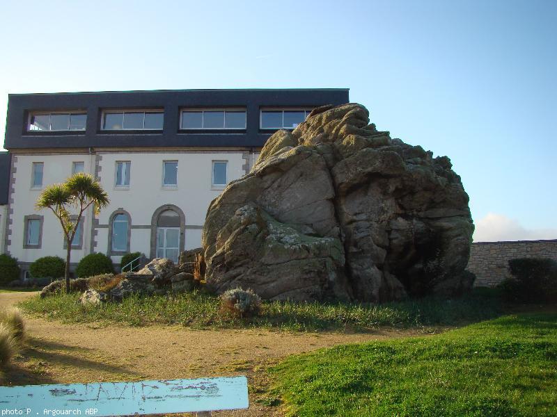 - Le rocher Rockroum avec derrière le bâtiment d'origine de l'institut de thalassothérapie de Roscoff