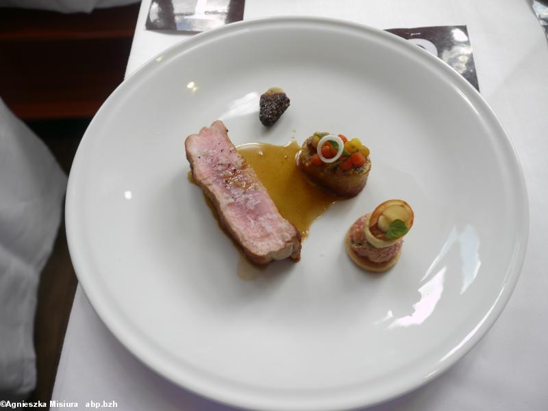 Pour l’épreuve finale, les ingrédients étaient : le carré de veau français, le foie gras Rougié et la poitrine fumée de porc. La règle du concours est d’utiliser des ingrédients 100% bruts, 100% frais et 100% du terroir.