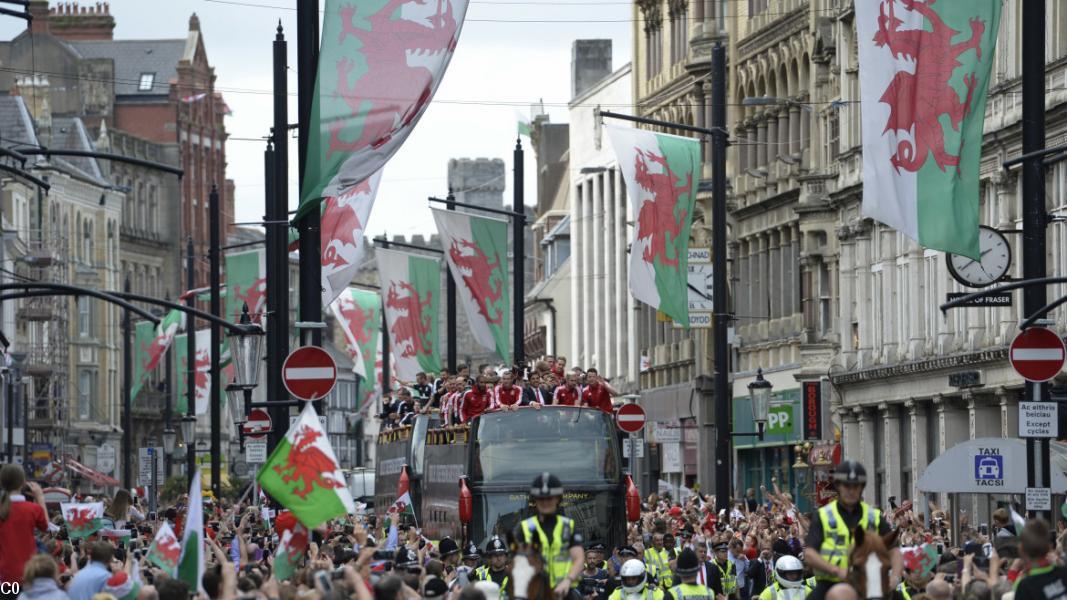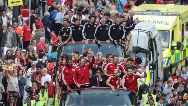 Ce vendredi fut jour de fête à Cardiff où l'on accueillait l'équipe nationale de retour en direct de Dinard. Accueil grandiose devant des dizaines de milliers de spectateurs à travers les rues de la capitale galloise jusqu'au stade des Cardiff Blues (l'équipe de foot de Cardiff) où devant plus de 30000 supporteurs, l'équipe, le staff, l'entraîneur furent applaudis à tout rompre.