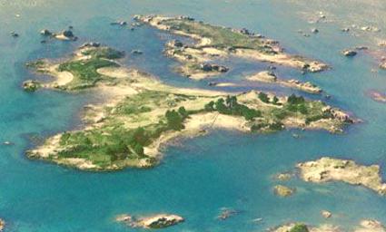« Près de Locmaria, de l'autre côté de l'île. Ils y avaient déjà été aperçus, l'été dernier, cette fois du côté de Sauzon », croit savoir le Télégramme de Brest toujours à l'affût du scoop. Une île, c'est le paradis. Ce n'est pas le couple de vedettes qui le démentira, lui qui a déjà investi dans une île des Caraïbes d'une superficie 14 hectares. La possibilité d'une île, on en ferait un roman (comme Houellebecq). Ils sont nombreux à rêver à ce bout de terre de cerné par la mer. Même Liliane Bettencourt. Qui n'a pas entendu parler dernièrement d'Arros, son île aux Seychelles... infestées de moustiques et de requins ? De sa propriété de l'Arcouest, l'héritière de L'Oréal a également vue sur mer et sur l'archipel de Bréhat. On connaît la plus grande île du même nom, nettement moins les neuf autres (révisons notre breton) : Ar-Morbic, Beniguet, Grou Ezen, Logodec, Maudez, Raguenes, Raguenes Meur, île Verte et ... Lavrec.
