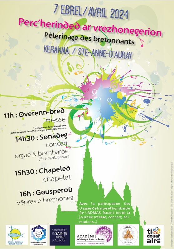 Après la messe, notamment animée par des sonneurs et harpistes de l’Académie de Musique et d’Art sacrés, aura lieu un baptême e brezhoneg. Pendant ce temps, des musiciens animeront le parvis. Ce qui le veulent pourront pique-niquer ensemble dans le parc. Les collégiens de la filière langue et culture bretonne de Sainte Anne d’Auray proposeront des animations en début d’après-midi.