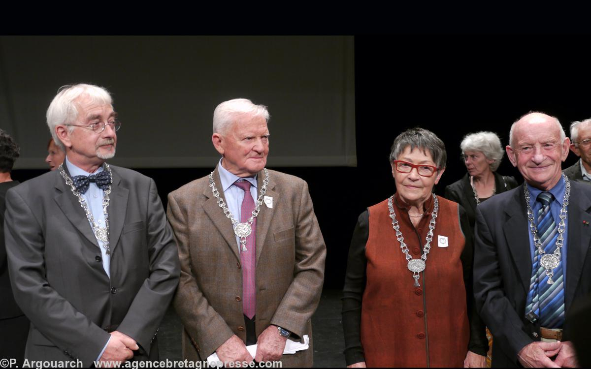 Le collier de l'Ordre a été remis hier à la chanteuse brittophone Andréa Ar Gouilh, à l'agriculteur André Pochon – un des pères de l'agriculture durable – à l'avocat Yann Choucq, co-fondateur de Skoazell Vreizh, et au professeur Joseph Le Bihan co-fondateur de l'Institut de Locarn.