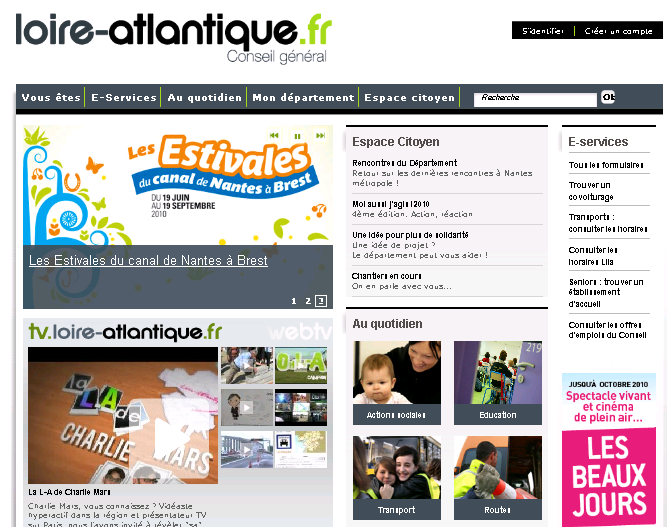 Nouvelle version du site web du Conseil général de Loire-Atlantique www.loire-atlantique.fr. Communiqué de presse 14 juin 2010.