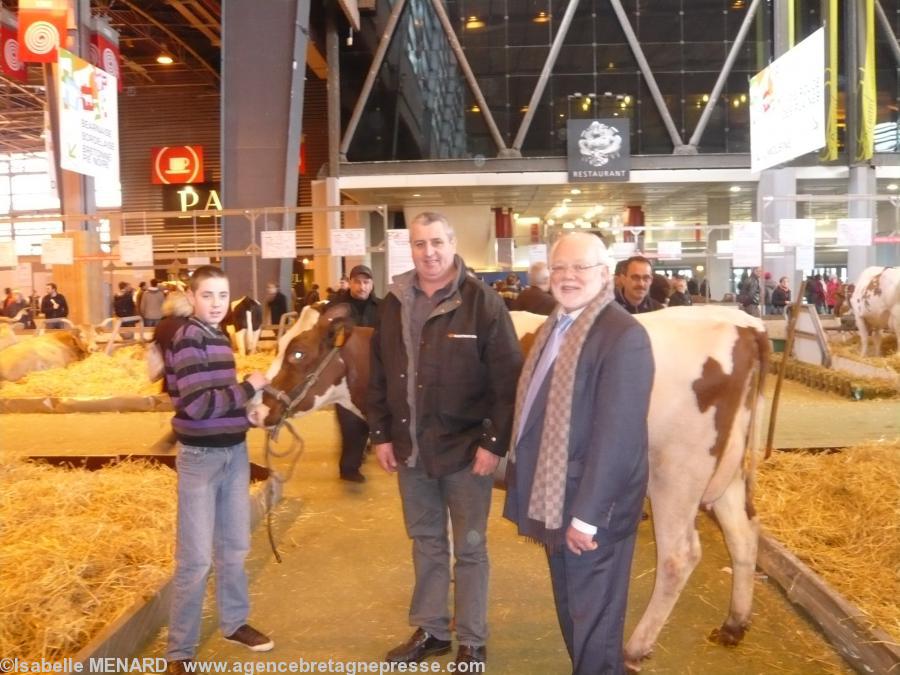 Le député Christian MENARD s'est rendu cette semaine au Salon de l'Agriculture à Paris où il a pu rencontrer des membres des différentes filières, ainsi que les éleveurs de notre région, comme Mr Pirou de Plounévezel dont la vache de race pie rouge des plaines a été primée mercredi lors du Concours National Espèce Bovine (Il s'agit là de la 3ème année consécutive où cet éleveur se voit primé au Salon de l'Agriculture) et Mr Ludovic Madec d'Hanvec, dont la vache a été particulièrement admirée par les visiteurs.