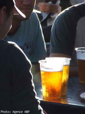 Peut-être le meilleur symbole du FIL - image mille fois rencontrée, mille fois reproduite - les reflets du soleil dans un verre de bière... (12), ou la trace d'un oubli, d'une négligence, mais dans un cadre choisi (photo 13, garantie de hasard, sans trucage). Qu'importe, l'équipe du service de nettoyage de Lorient, débordée, mais efficace, y veillera dès demain à l'aurore. Radio France régionalisée, depuis longtemps aux couleurs de l'Écosse, ne dépare pas sur le pont (14).