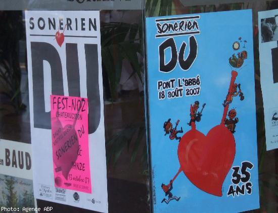 Tiens, les DU, au coin du palais des Congrès (17) ! Du rouge, du noir, du blanc, du bleu. Le biniou-cœur de Fañch Le Hénaff, revu par À l'aise Breizh, est habité cette année ! Trente-cinq ans de scène, de tournées pour les Sonerien Du, quatre générations de fans se côtoient maintenant à leurs festoù noz. Ça va chauffer à Pont L'Abbé le 18 août et encore le 19 !