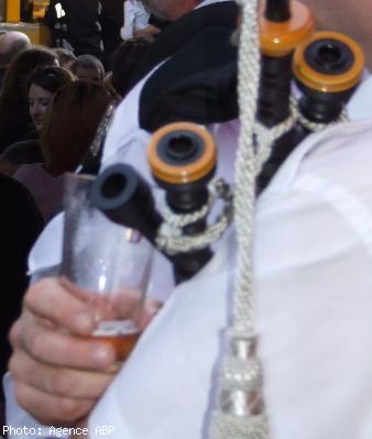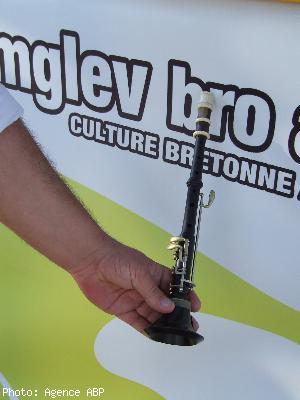 Sur le jaune-vert tendre du stand d'Emglev Bro an Oriant, un sonneur laisse admirer sa bombarde vénérée, ébène et ivoire (18), qu'il améliora avec les embouts d'ivoire d'une plus ancienne, ne pouvant plus trouver d'ivoire. Celui des éléphants des zoos, le seul autorisé, est très demandé.