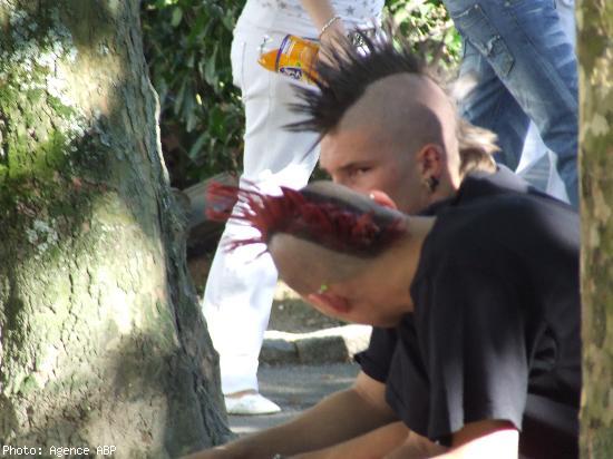 Des punks aux cheveux rouges prennent le frais à l'ombre (23) non loin du transformateur : l'électricité de France avait même prévu de se mettre aux couleurs du festival (24).