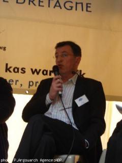 Didier Gourin de Ouest France Finistère s\\\'est défendu de programmer le journal autour d\\\'un lecteur moyen. Il a rappelé qu\'il y a \"du breton dans l\\\'édition dominicale\" et qu\\\'un journal n\'est pas \"un manuel pour apprendre une langue\". Lionel Buannic, journaliste au Télégramme et initiateur de WEBNOZ, une TV en breton sur Internet, est lui convaincu que l\'Internet est la nouvelle frontière. Pour Didier Le Corre, rédacteur en chef du magazine \"Bretons\", il y a chez les Bretons et les amoureux de la Bretagne une "structure affective et mentale qui fait qu\'ils partagent une pensée commune". Il va de soi que ça va au-delà de la langue, bien que Le Corre reconnaisse que « la Bretagne soit avant tout une langue ». Emmanuel Yvon, directeur de France Bleu Breiz Izel et Loeiz Guillamot aussi de RBI entendent bien revenir à 1000 heures de breton comme 2004 (936 en 2006). Ils ont réaffirmé que l'État était l'actionnaire et qu'ils ne pouvaient pas faire ce qu'ils voulaient.