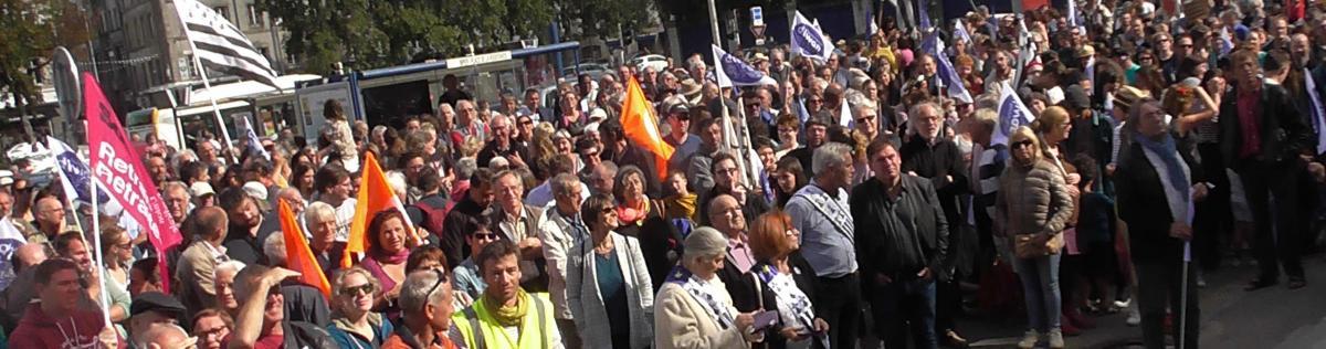 C'est Diwan qui donne le la, suivi de l'intersyndicale, avec de nombreux élus présents, sénateur, vice-président du Conseil Départemental, vice-présidente de la Région, maires...