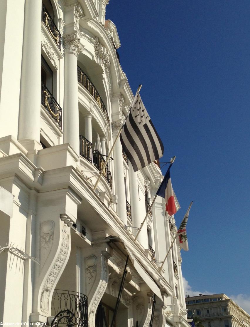 Le Gwenn ha Du flotte sur le célèbre Negresco à Nice : sa propriétaire Madame Jeanne Augier a en effet voulu marquer à sa façon le 100 ème anniversaire de ce